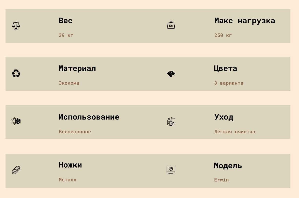 Помимо эстетики и комфорта, аренда дивана Erwin — это ещё и полный спектр услуг, включающих доставку, сборку и демонтаж по Москве и области. При аренде на несколько дней предоставляются выгодные скидки до 70%, что делает использование мебели ещё более привлекательным и рациональным.