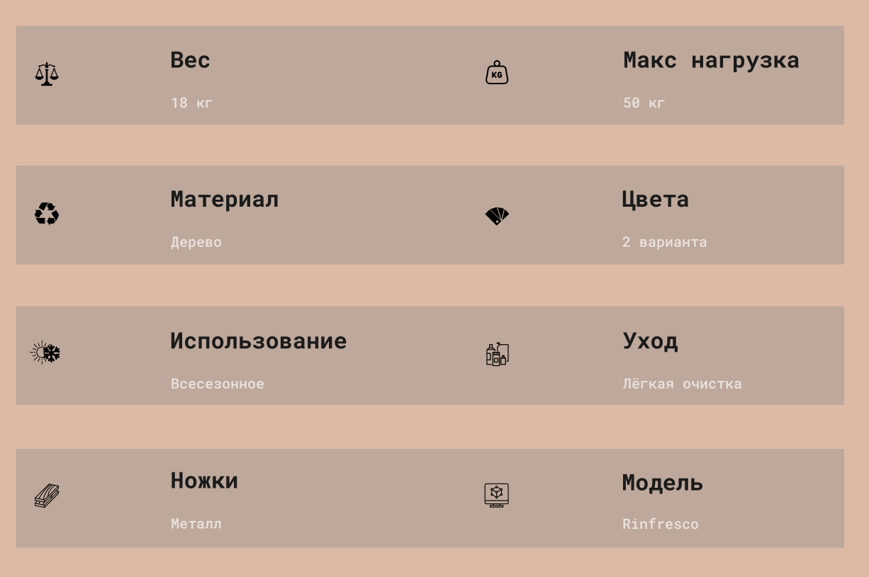 Rinfresco выглядит современно и ненавязчиво. Его дизайн не перетягивает внимание на себя, но помогает создать аккуратную и организованную зону. Это особенно важно там, где гости проводят время в ожидании или знакомятся с материалами мероприятия.