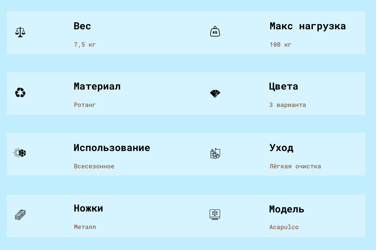 Аренда кресла Acapulco — это возможность обеспечить комфорт и стиль для ваших гостей без лишних затрат на покупку и хранение мебели. Простая сборка, мобильность и удобство эксплуатации делают модель незаменимой для любого события.
