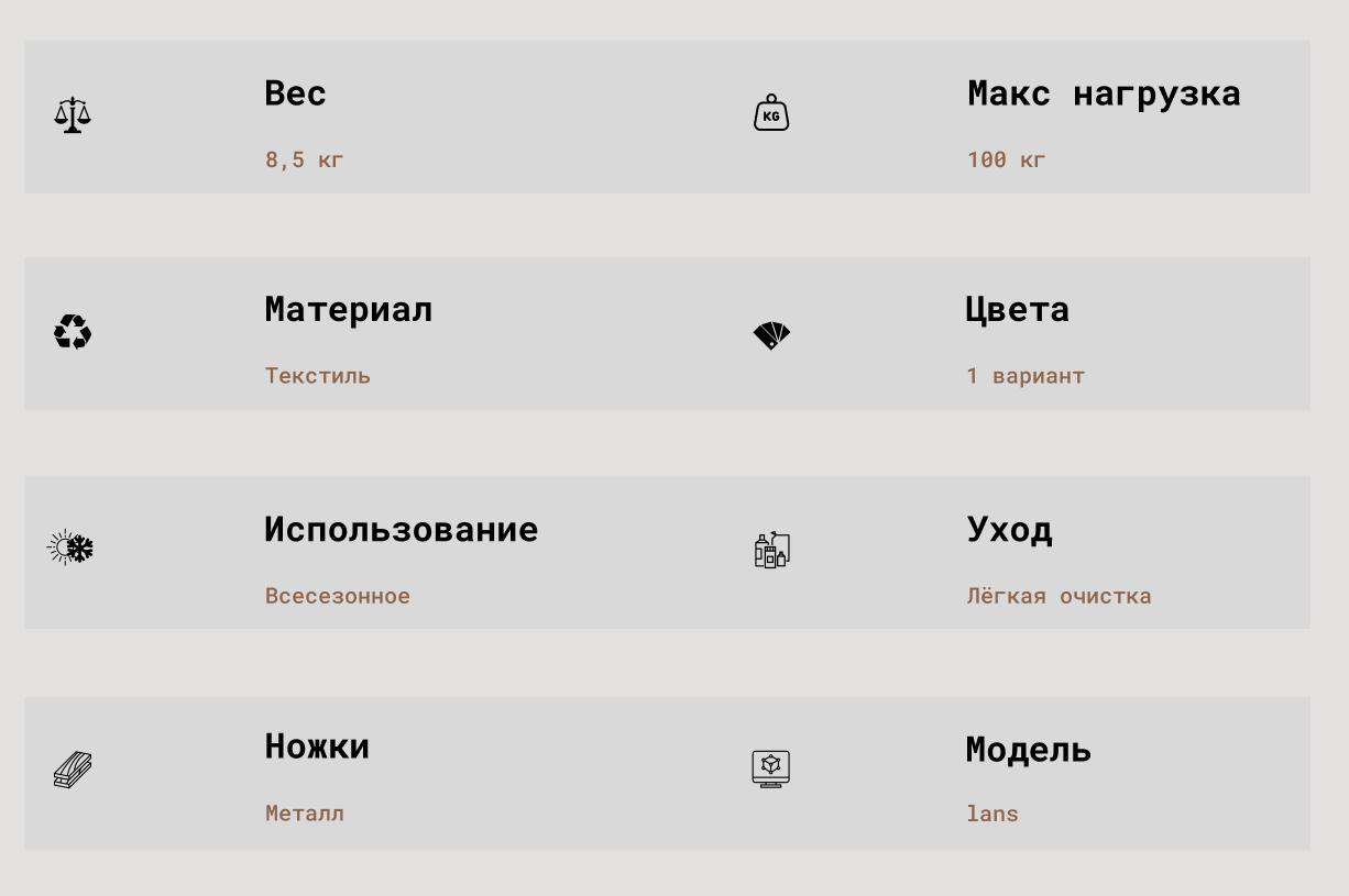 Визуальная нейтральность: светло‑серая ткань и матовые чёрные ножки гармонично смотрятся в деловом, креативном и премиальном окружении, не перетягивая внимание с экспозиции или сцены.
