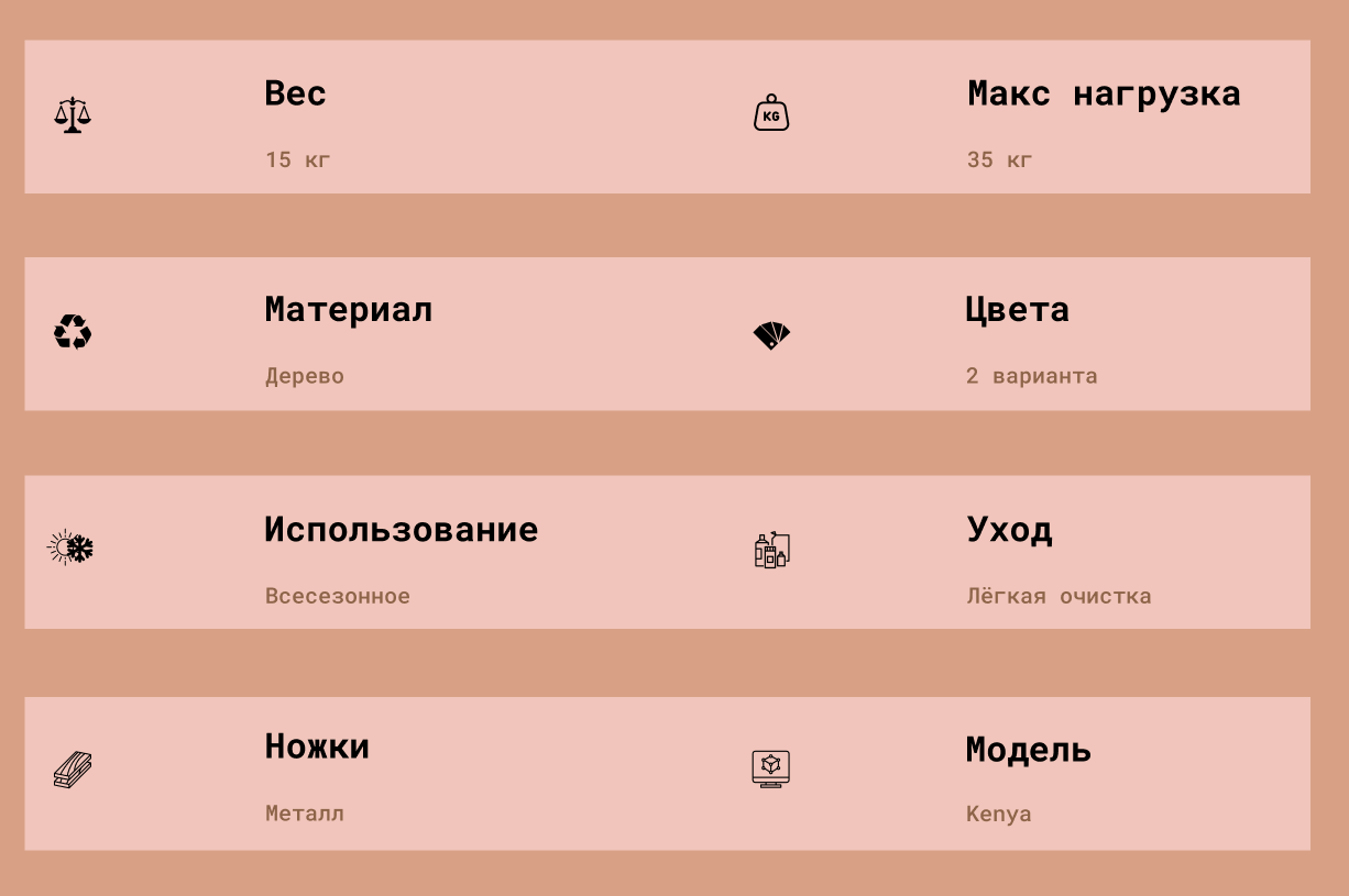 Особенность стола Kenya в его компактности и лёгкости. Он устойчив и удобен для перемещения, что делает его удобным выбором для выставок, конференций и других мероприятий, где нужно быстро организовать пространство. Аренда этого столика на многодневные события особенно выгодна: мы предоставляем скидки до 70% на второй и последующие дни аренды, что позволяет эффективно экономить на организации.