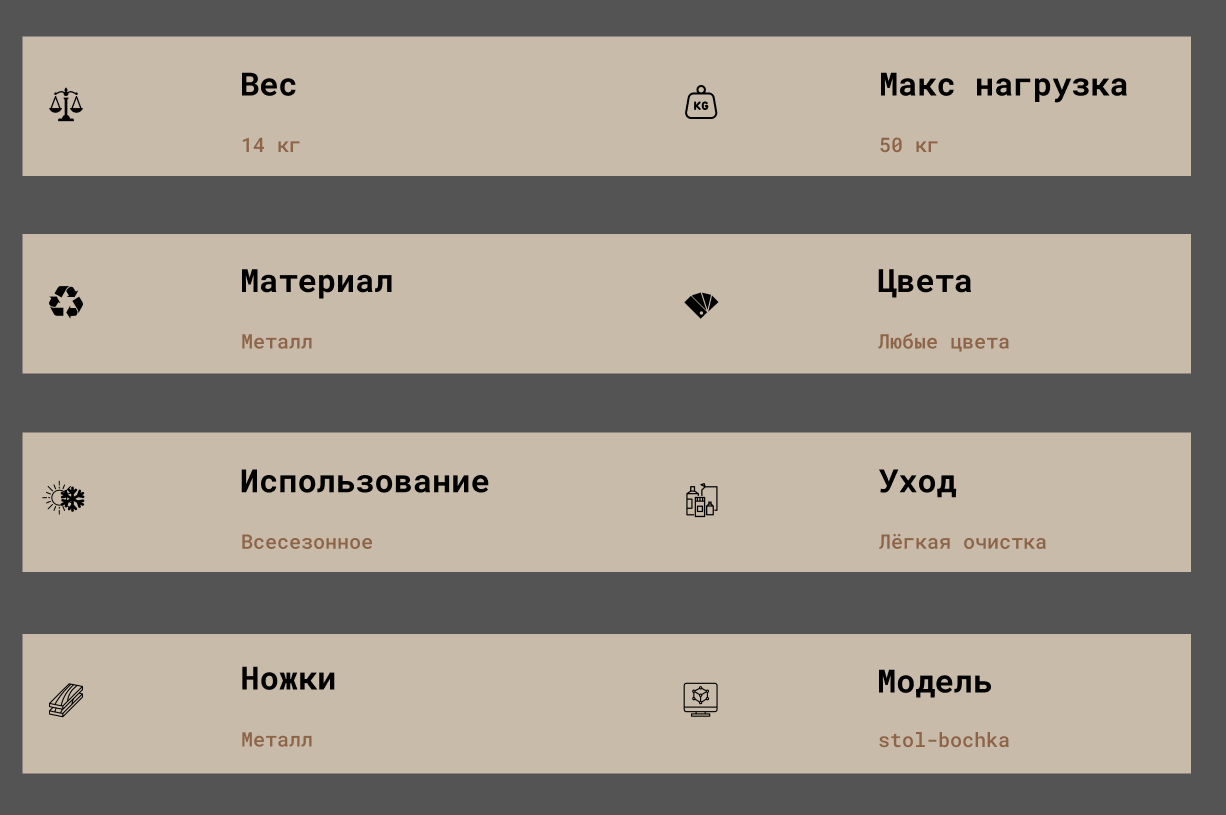 Стол-бочка чёрного цвета подходит для разных целей. На выставках он может служить местом для размещения сувениров, буклетов и промо-материалов. На корпоративных мероприятиях или вечеринках он превращается в барную стойку или стол для закусок. На конференциях стол-бочка используется как удобная точка для напитков, документов и презентационных материалов. Благодаря своей прочной конструкции, он выдерживает значительные нагрузки, сохраняя устойчивость и удобство использования.