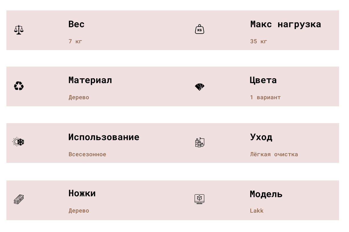 Дизайн Лакк универсален и вписывается как в современные минималистичные интерьеры, так и в более классические пространства. Лёгкий вес столика облегчает его перемещение, что удобно для перестановки в рамках одного мероприятия или для организации нескольких зон.