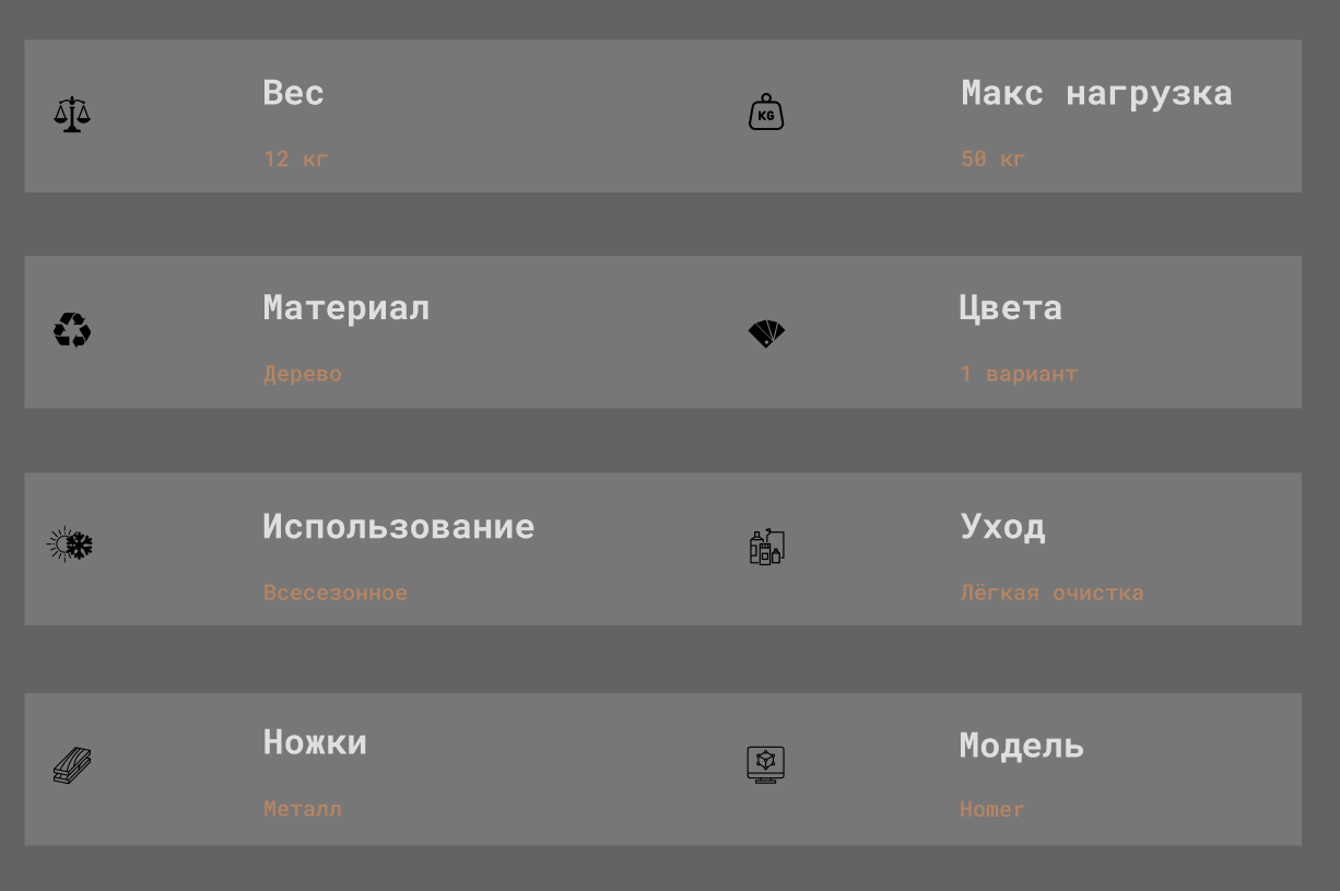 Чёрная версия Homer появилась как ответ на запрос организаторов, которым нужна нейтральная, аккуратная и неброская мебель. Она хорошо работает в пространствах с современным дизайном, в выставочных павильонах, бизнес-центрах, шатрах, временных офисах и фотозонах. Благодаря простым формам этот стол легко вписывается в разные стилистики — от минималистичных до более насыщенных визуально.