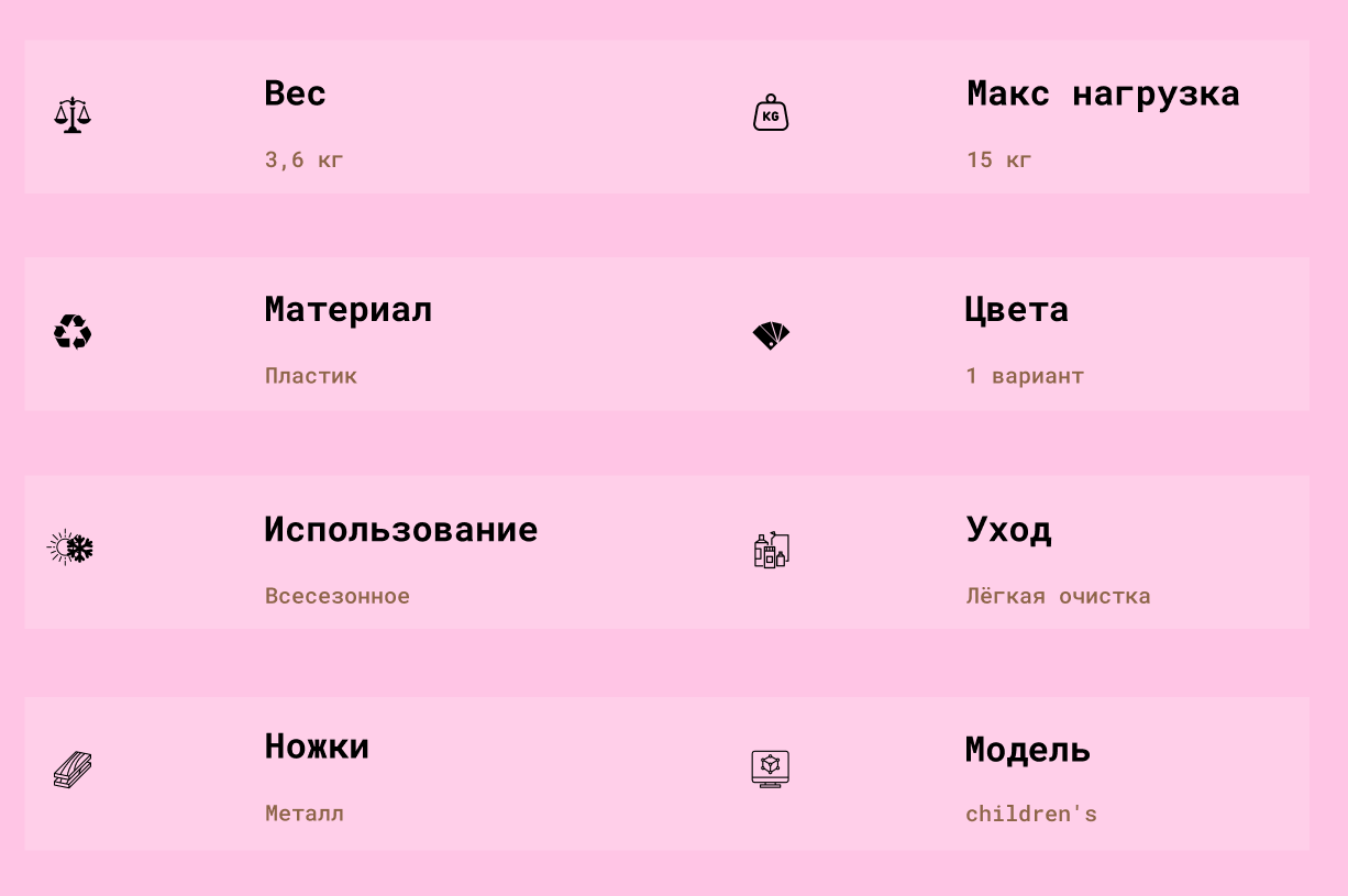 Главное преимущество этого стульчика — простота сборки и ухода: гладкий пластик легко чистится, а компактные металлические ножки делают конструкцию устойчивой даже на активных детских праздниках.