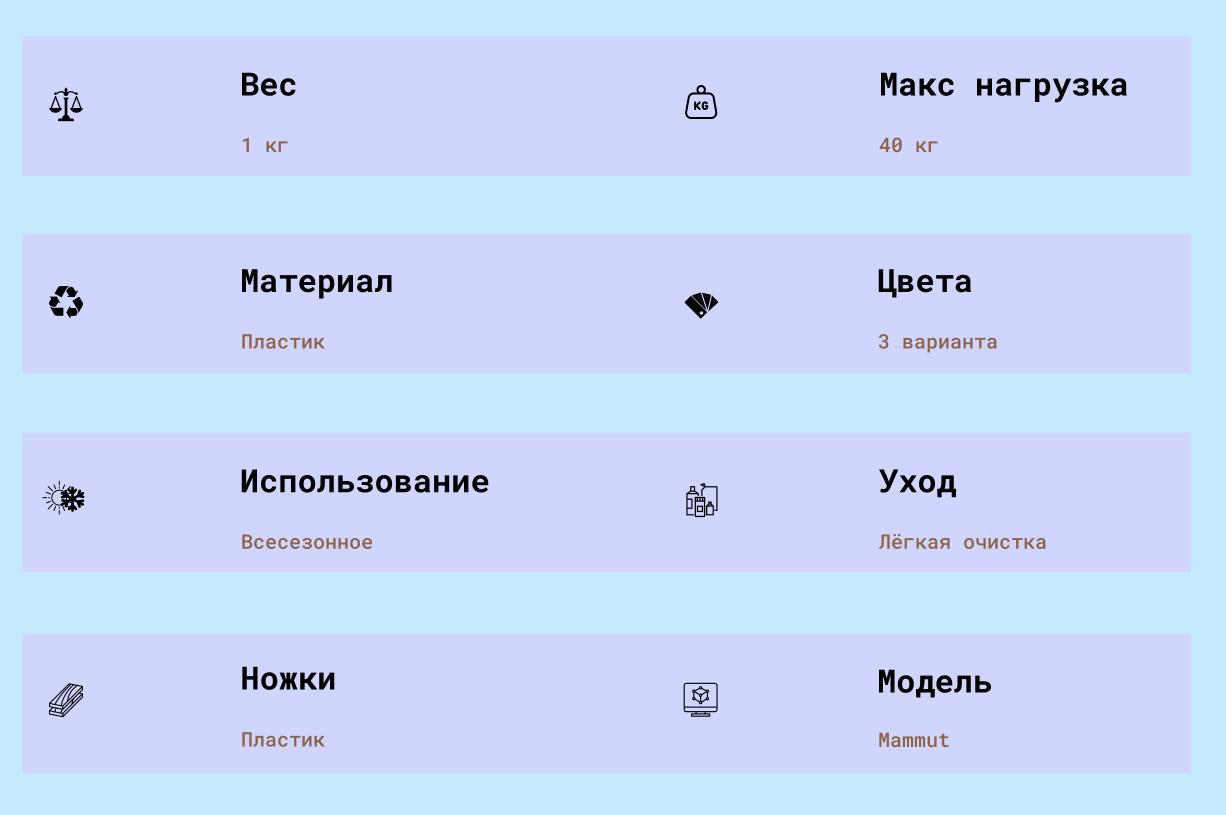 Аренда стульчика Mammut — это также экономия времени и сил: всегда в наличии чистая, проверенная и подготовленная мебель с быстрой доставкой по Москве и области. Кроме того, при длительной аренде действует скидка до 70% на второй и последующие дни. Это отличное предложение для тех, кто организует многодневные фестивали, мастер-классы или конференции с участием семей.