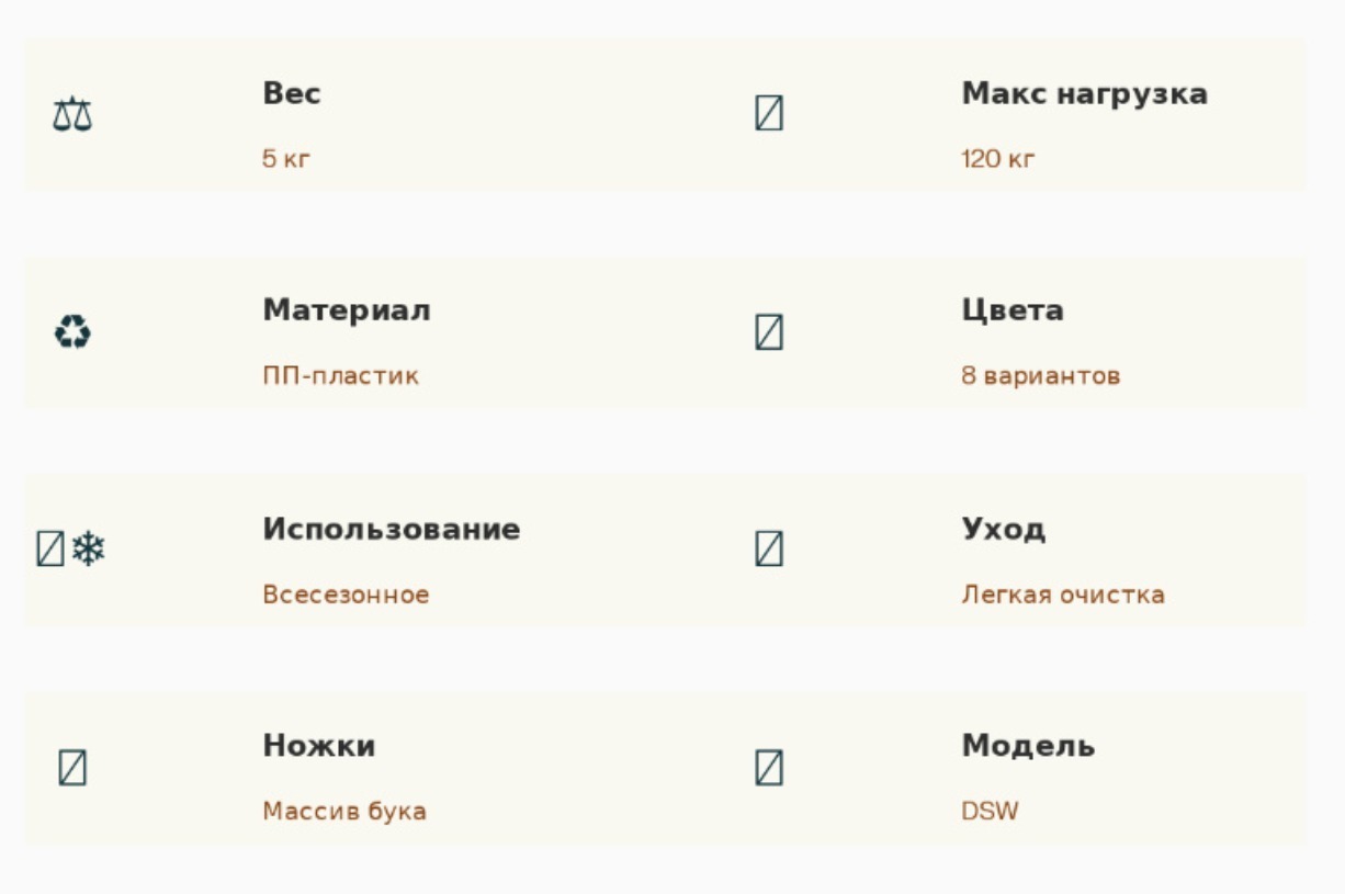 Универсальность использования — главное преимущество. Пластик легко очищается от загрязнений, не впитывает запахи. Стулья подходит для всесезонного использования на улице: материал устойчив к температуре, солнцу и влажности